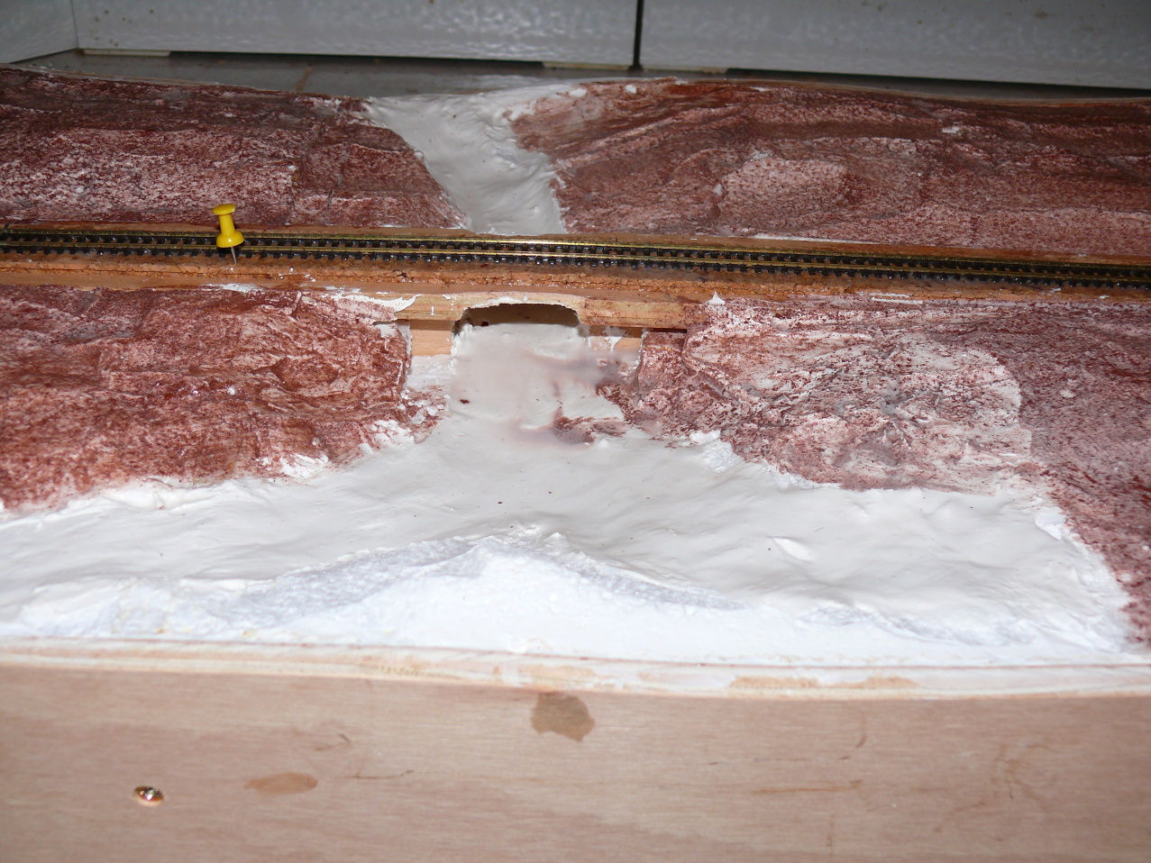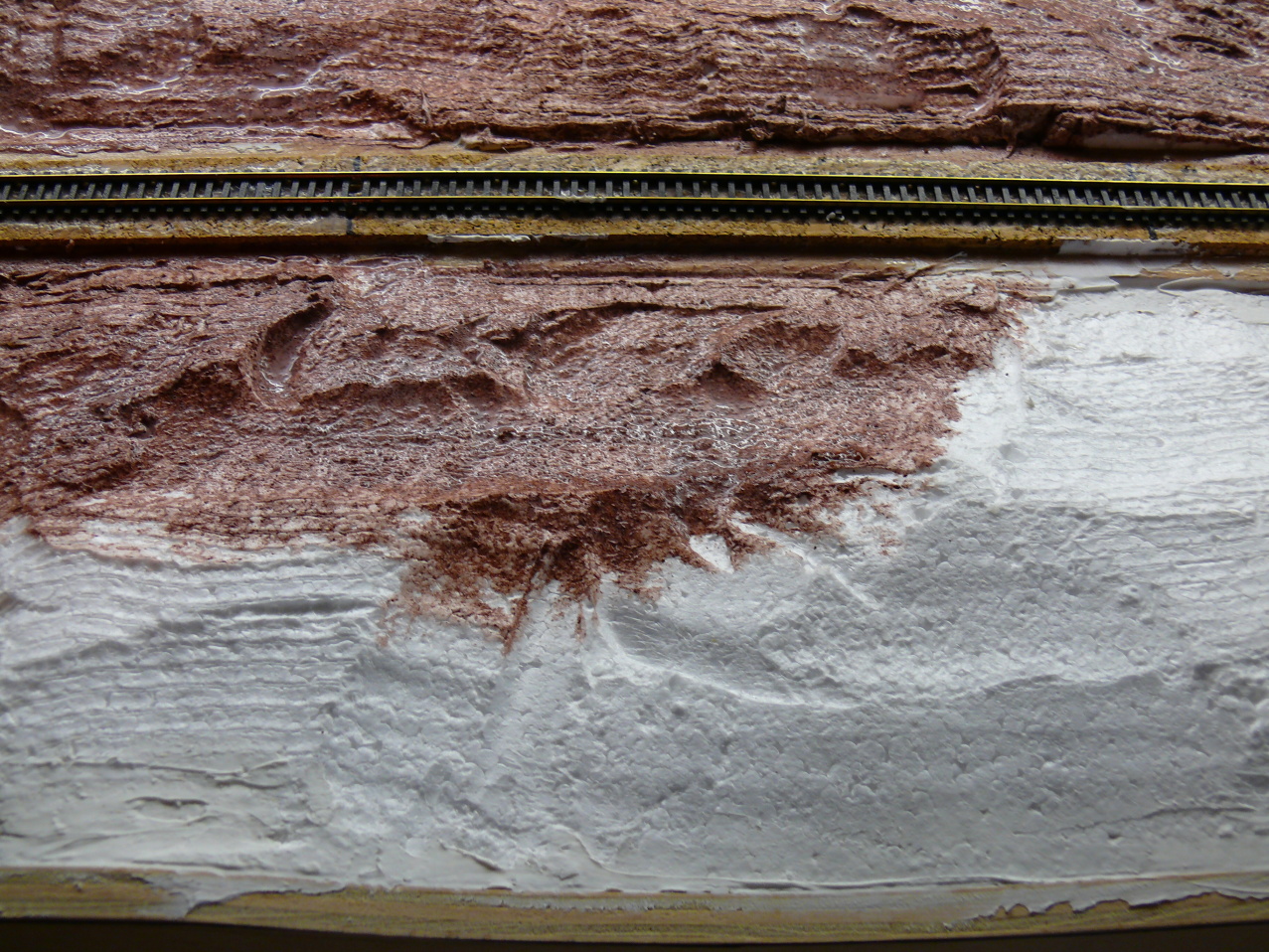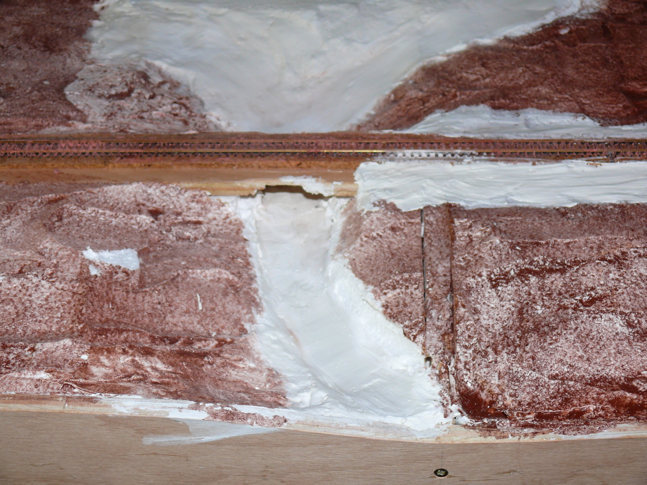 Začal jsem s foliažemi od Model scene a Poláka. Podklad pro foliáže jsem vždy natřel lepidlem s hnědou barvou. Nemusím se bát, že bude pak prosvítat polystyrén.