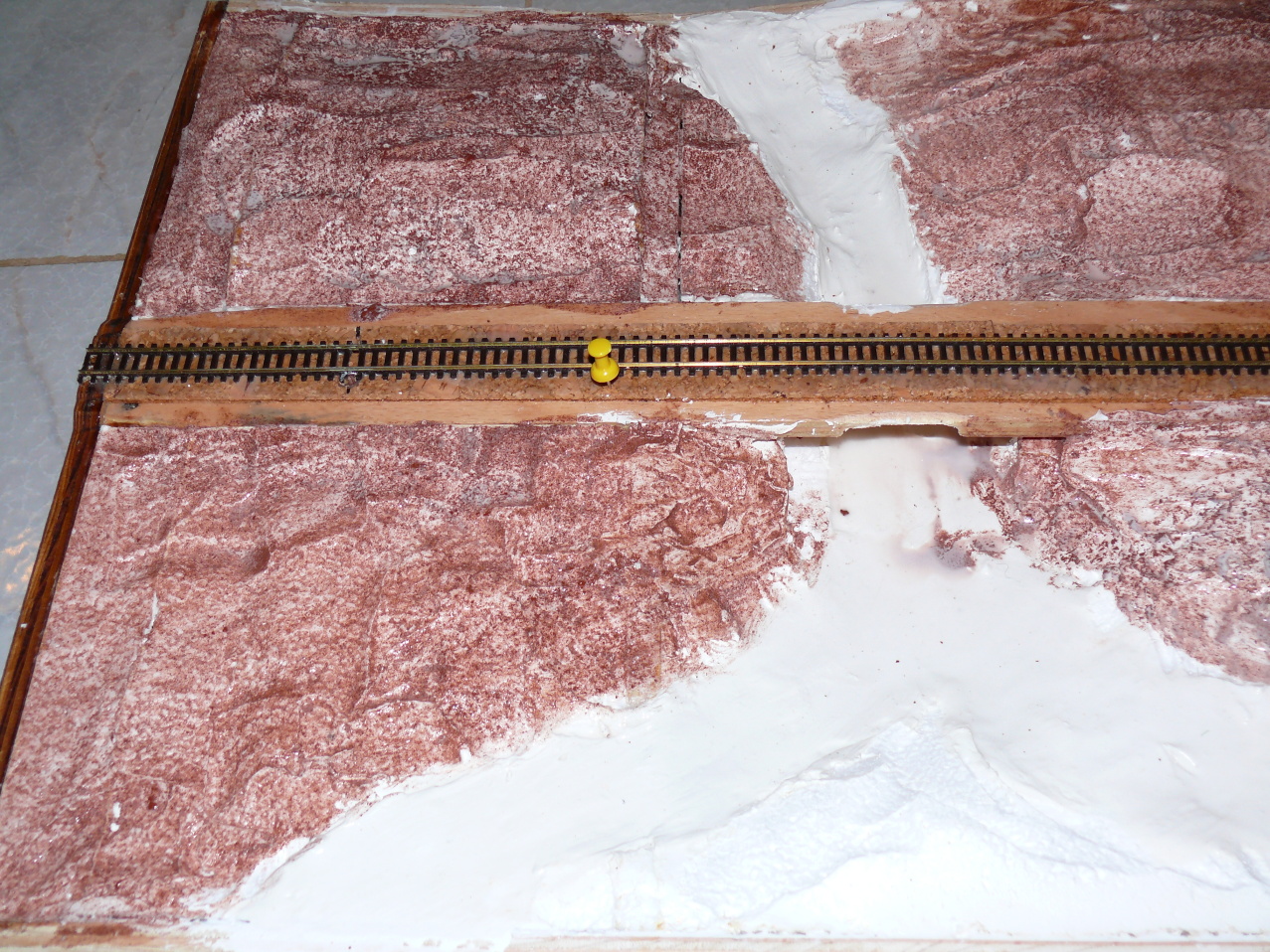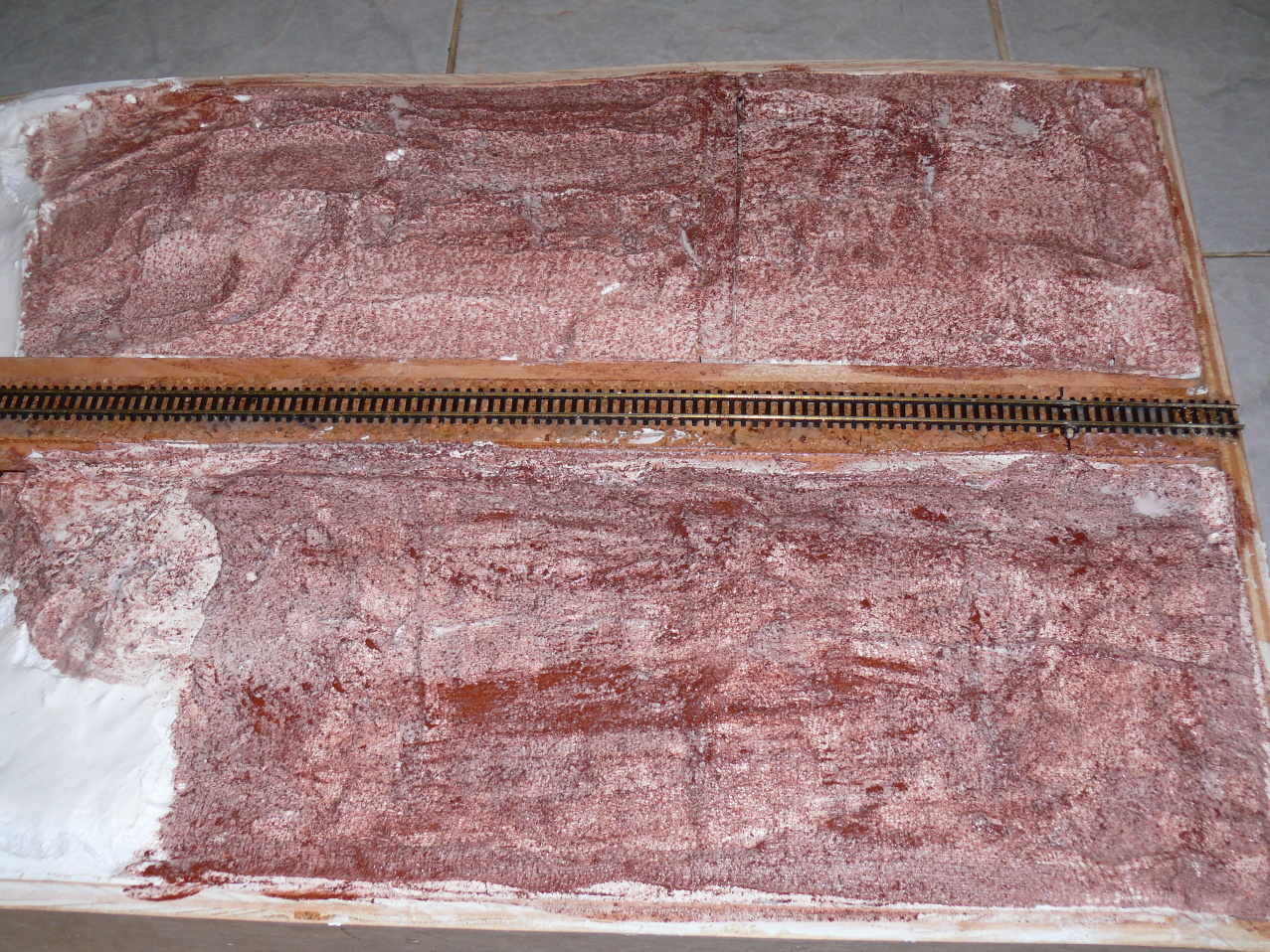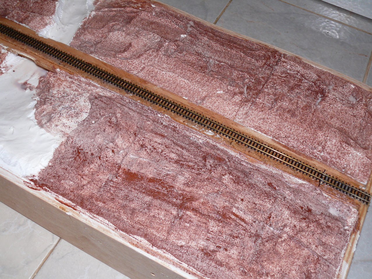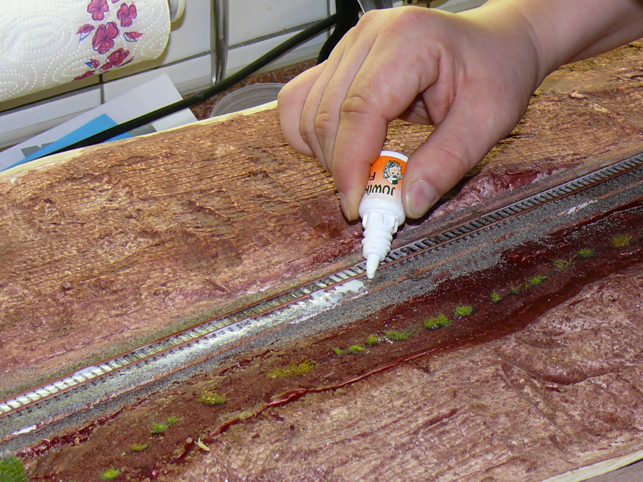 Začal jsem se štěrkování koleje u jednoho z modulu. Štěrk mi poskytl Dan Urban je to mix barvy šedé s hnědou.
