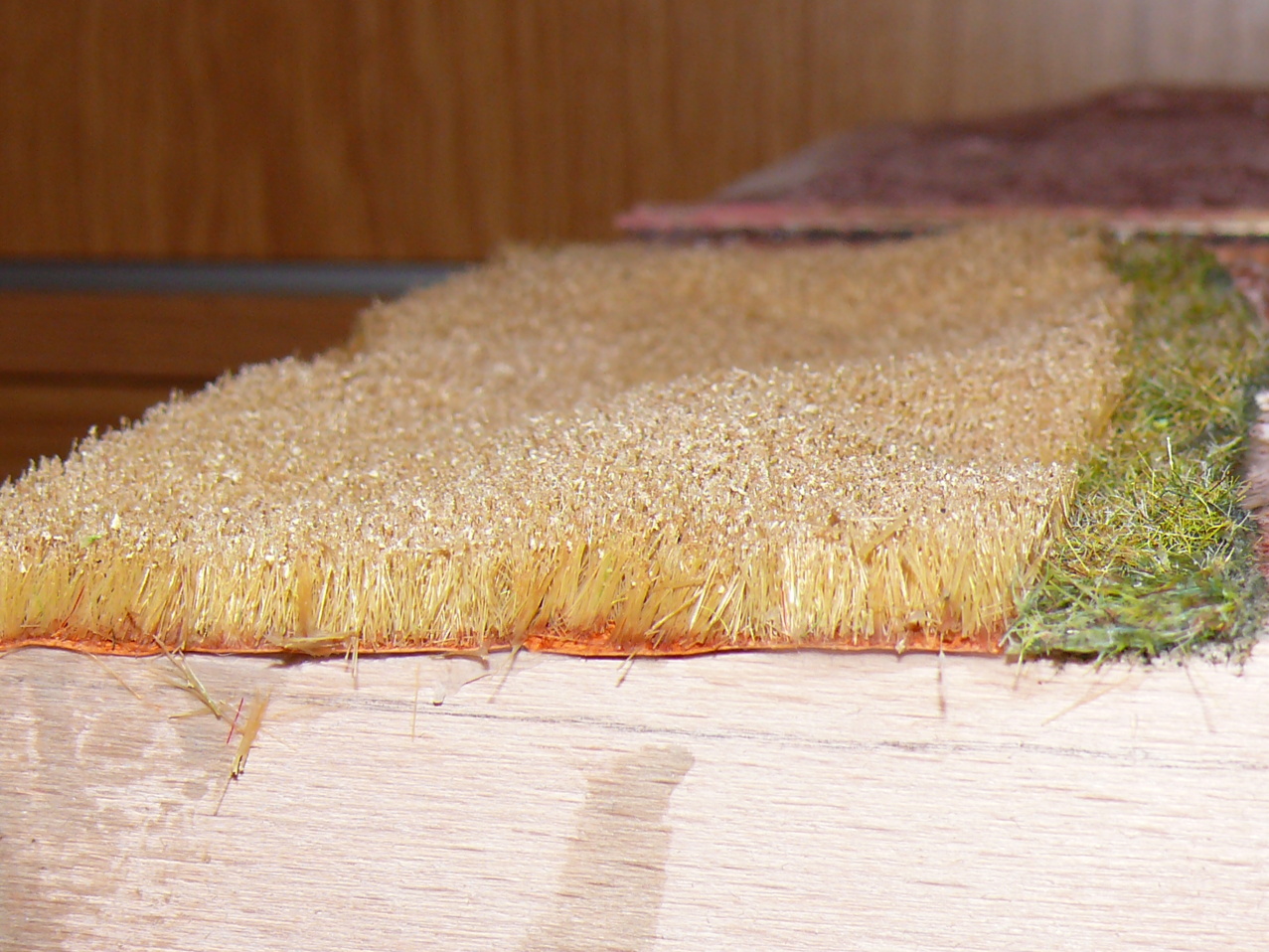 Po důkladném zaschnutí pole jsem ho slabě potřel lepidlem a začal nanášet uschlou nať a plevel.