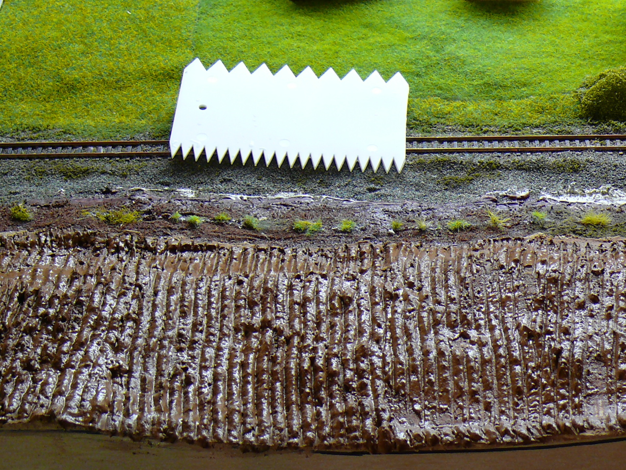 Na brázdy jsem původně zkoušel hřeben s hustými zuby, ale výsledek nic moc.